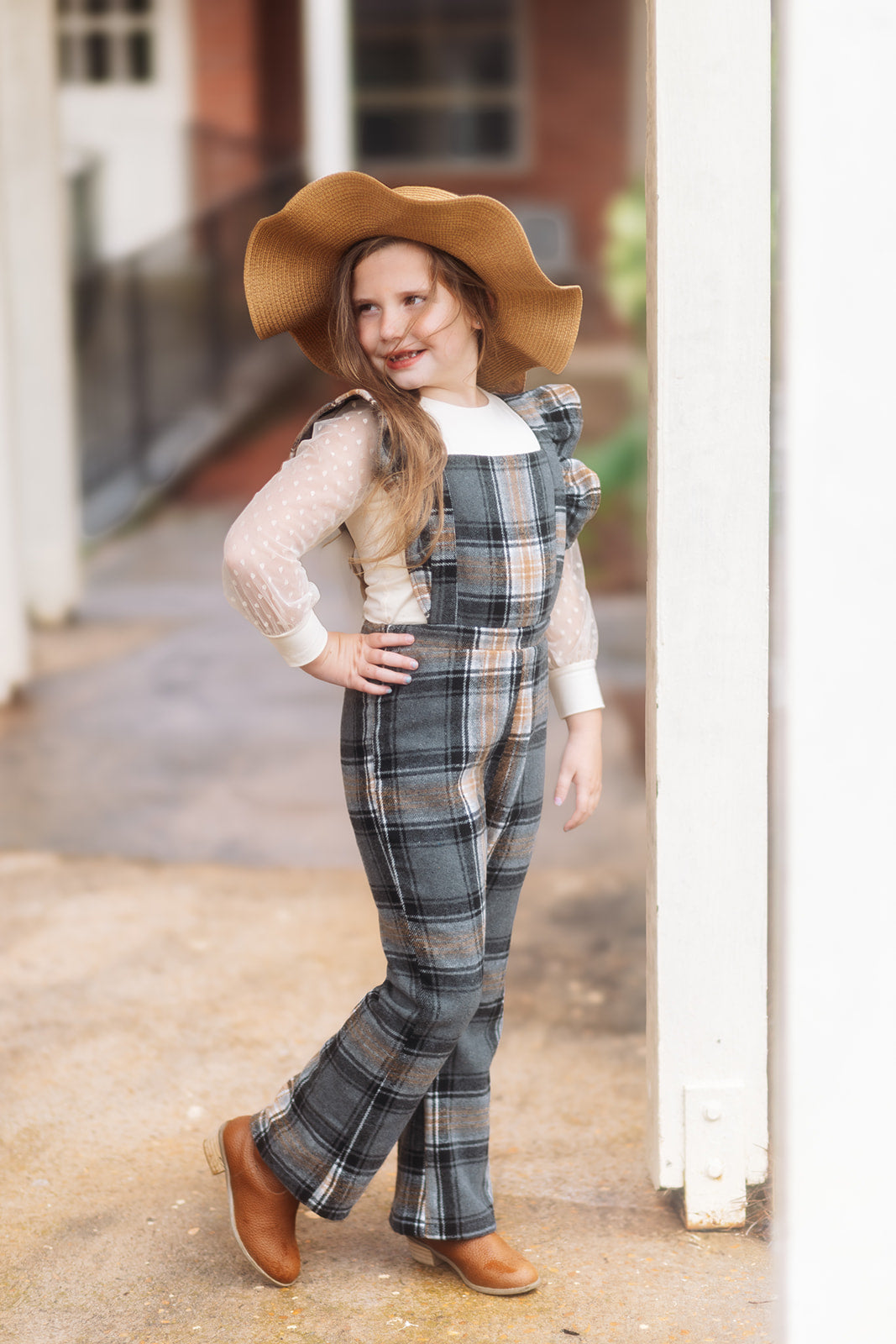 Classic charm meets cozy comfort—our Walnut Hill Wool Plaid Overalls feature tailored lines, a flattering flare leg, and sweet ruffle straps. Made in soft wool plaid, they’re the perfect fall staple, pairing effortlessly with knits or blouses for everyday play or special outings. Shirt not included *